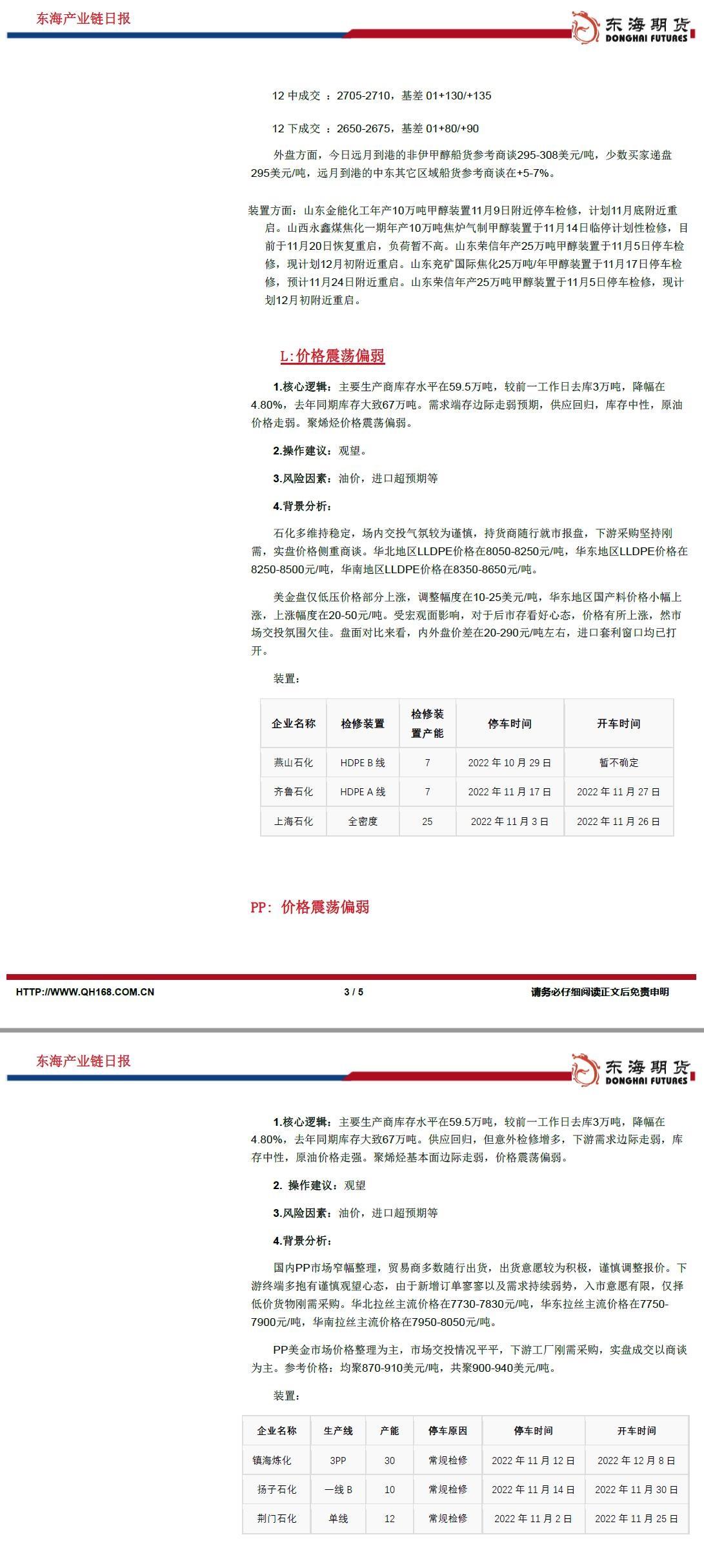 L:价格震荡偏弱
