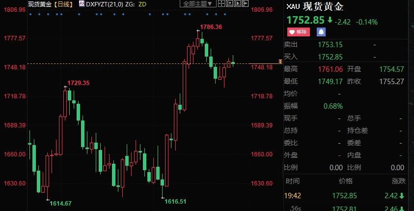 截止发稿,现货黄金上浮0.18%至1752.71美元/盎司;美元指数下跌0.90%至106.037。