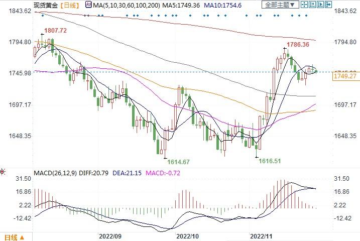 北京时间11月28日13:43,现货黄金报1750.32美元/盎司