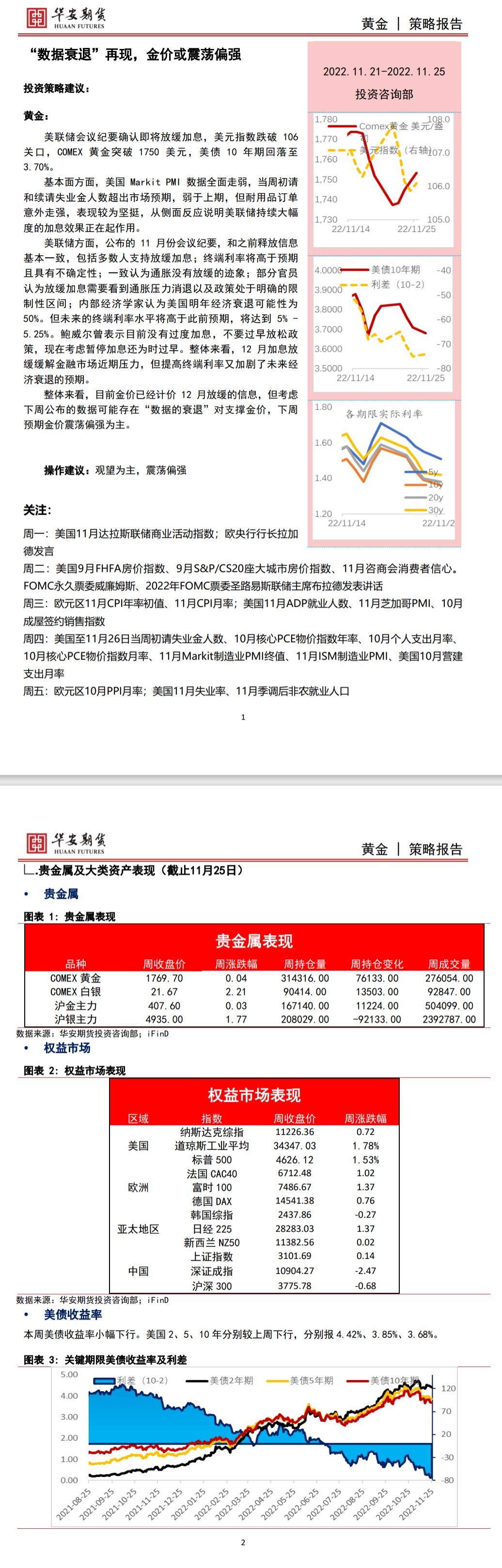 【华安期货】贵金属11月27日周报:“数据衰退”再现,金价或震荡偏强