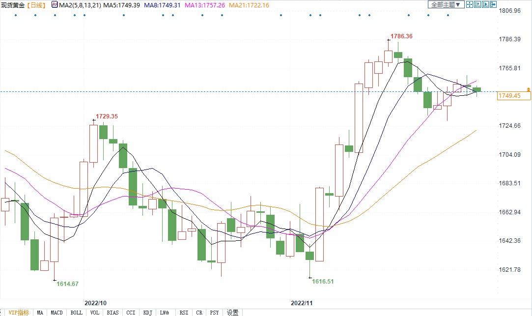 北京时间11月28日11:36,现货黄金报1749.22美元/盎司