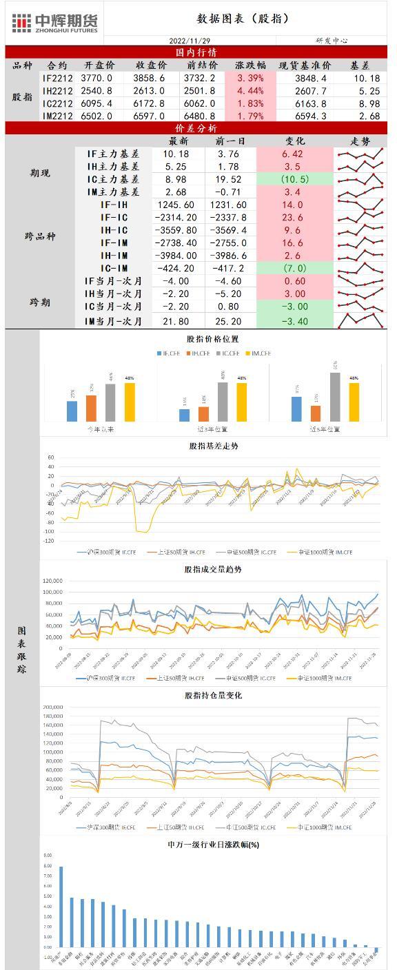 中辉期货股指日报20221129:稳地产政策升级,股指全线走高