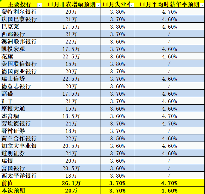 23家投行前瞻11月非农:增速料进一步放缓,黄金有望获得支撑