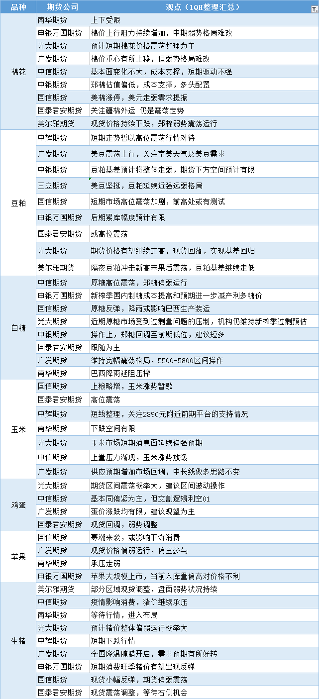 期货公司观点汇总一张图:12月1日农产品(棉花、豆粕、白糖、玉米、鸡蛋、生猪等)