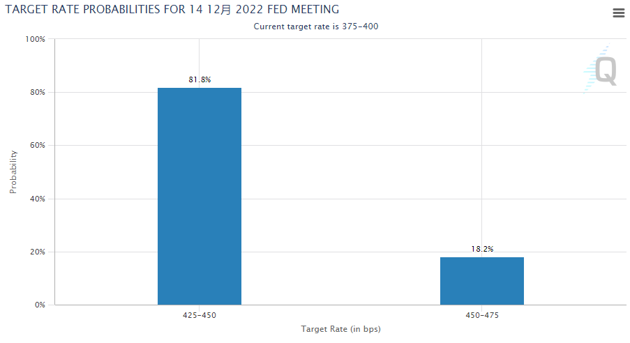 若12月份美联储如期加息50个基点——隔夜政策利率区间提高到4.25%-4.50%,今年累计加息425个基点,美联储将创下自沃尔克担任主席以来最快的利率上涨速度。(注:沃尔克在1979年至1987年任美联储主席,期间美国通胀一度高达13%。)