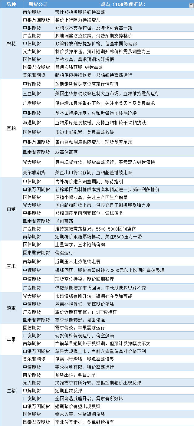期货公司观点汇总一张图:12月6日农产品(棉花、豆粕、白糖、玉米、鸡蛋、生猪等)