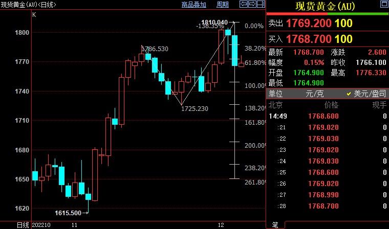 隔夜金价一度录得7月初以来新高至1809.85美元/盎司。但随后公布的数据显示,美国服务业活动在11月意外回升,就业人数反弹,金价因此回落转跌,终盘创9月23日以来最大单日跌幅1.62%。