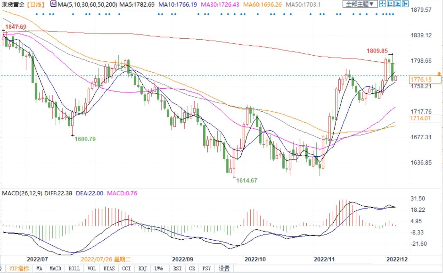 北京时间12月6日19:46,现货黄金报1776.63美元/盎司