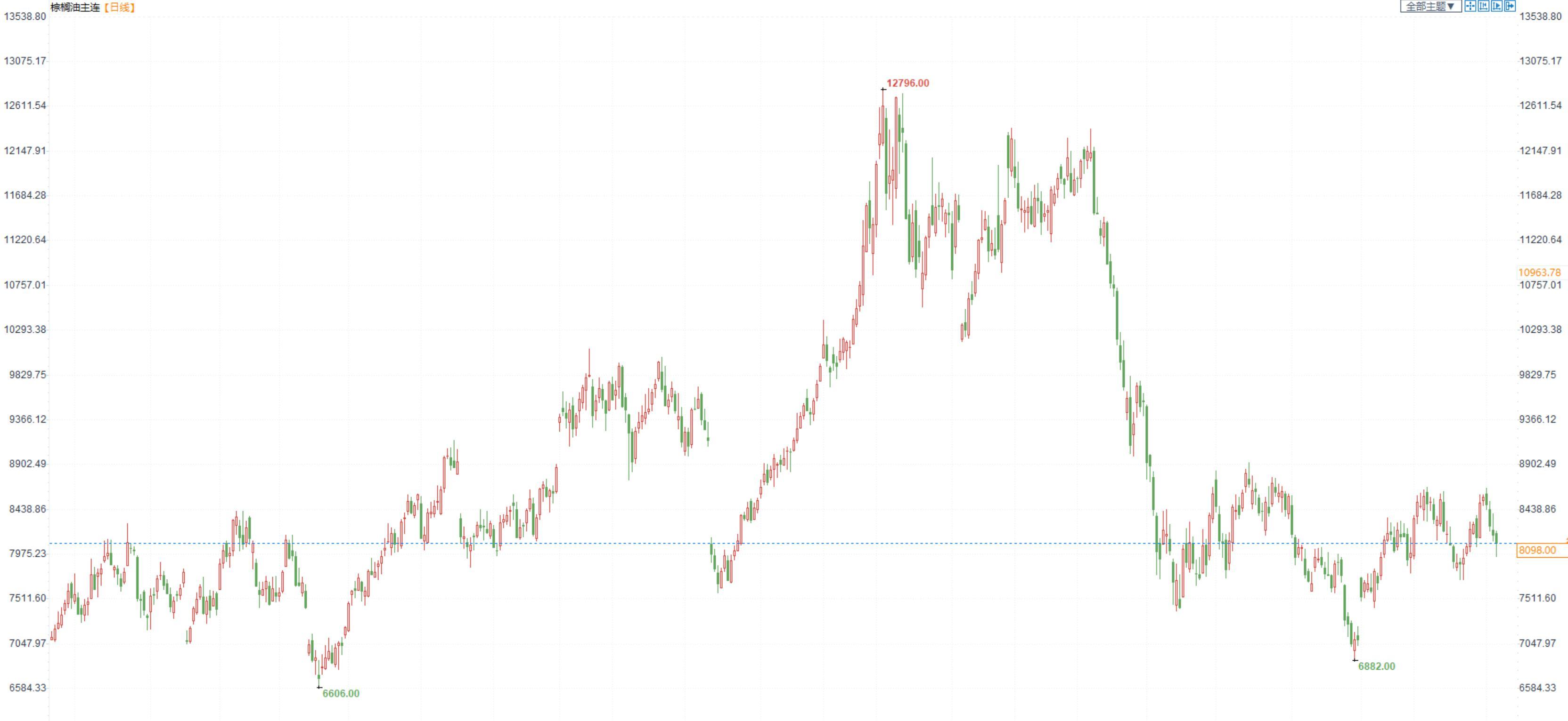 棕榈油2301合约日内跌2.15%,收盘8098元/吨;广州市场棕榈油8150元/吨。