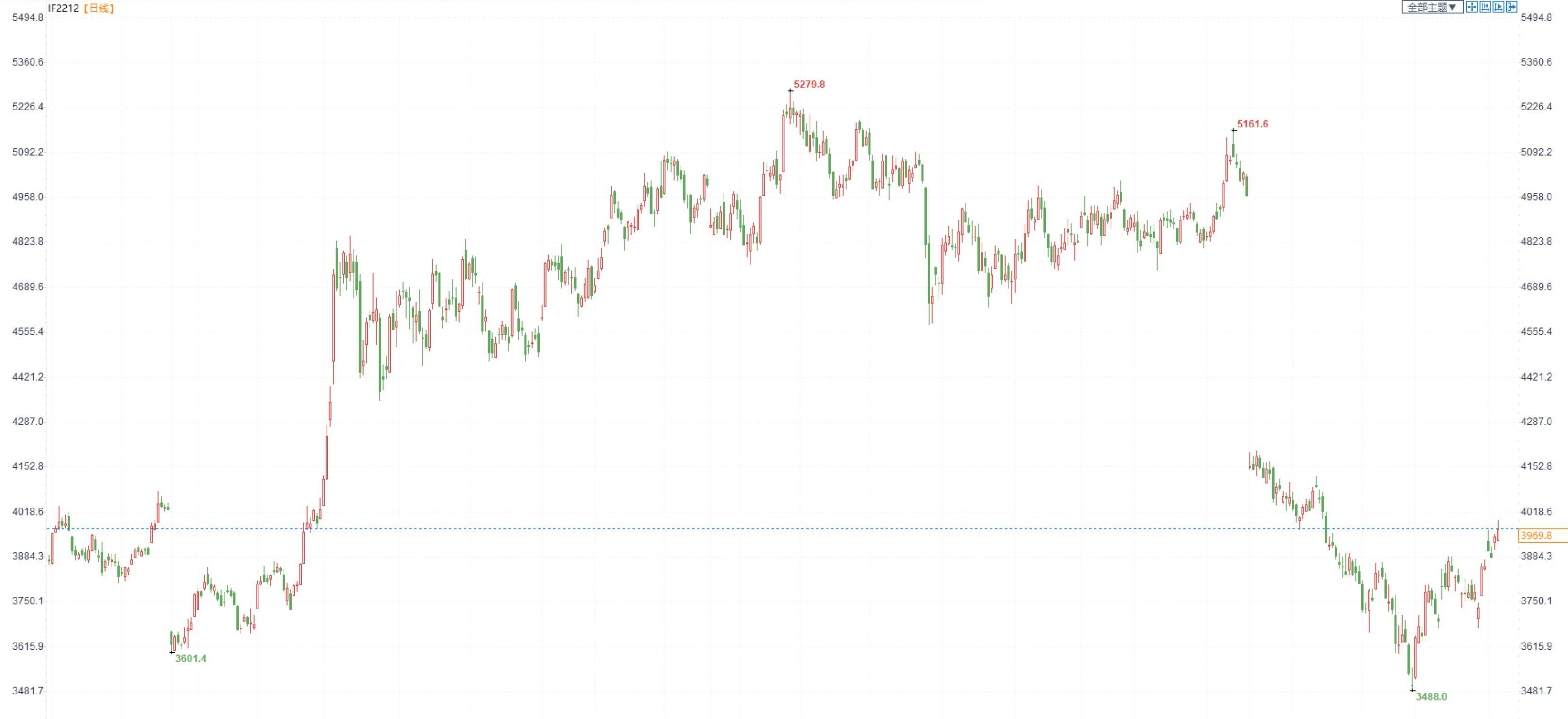 【今日涨跌】四大期指全线收涨。IH2212收盘价为2685,收涨0.51%;IF2212收盘价为3969.8,收涨0.67%;IC2212收盘价为6214.6,收涨0.07%;IM2212收盘价为6697.8,收涨0.03%。