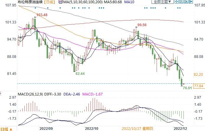 汇通财经APP讯——WTI和布伦特原油价格周二连续第三个交易日下跌,WTI目前处于一年来的最低水平。Nymex 1月交割的即月原油期货当日收盘下跌3.5%,至74.25美元/桶,为近一年来的最低水平,而2月布伦特原油期货收盘下跌4%,至79.35美元/桶,为1月3日以来的最低收盘水平。现在很明显,更广泛的市场抛售以及对美联储更激进的货币收紧政策的担忧,已经盖过了对俄罗斯石油销售实施的新价格上限的任何积极影响。