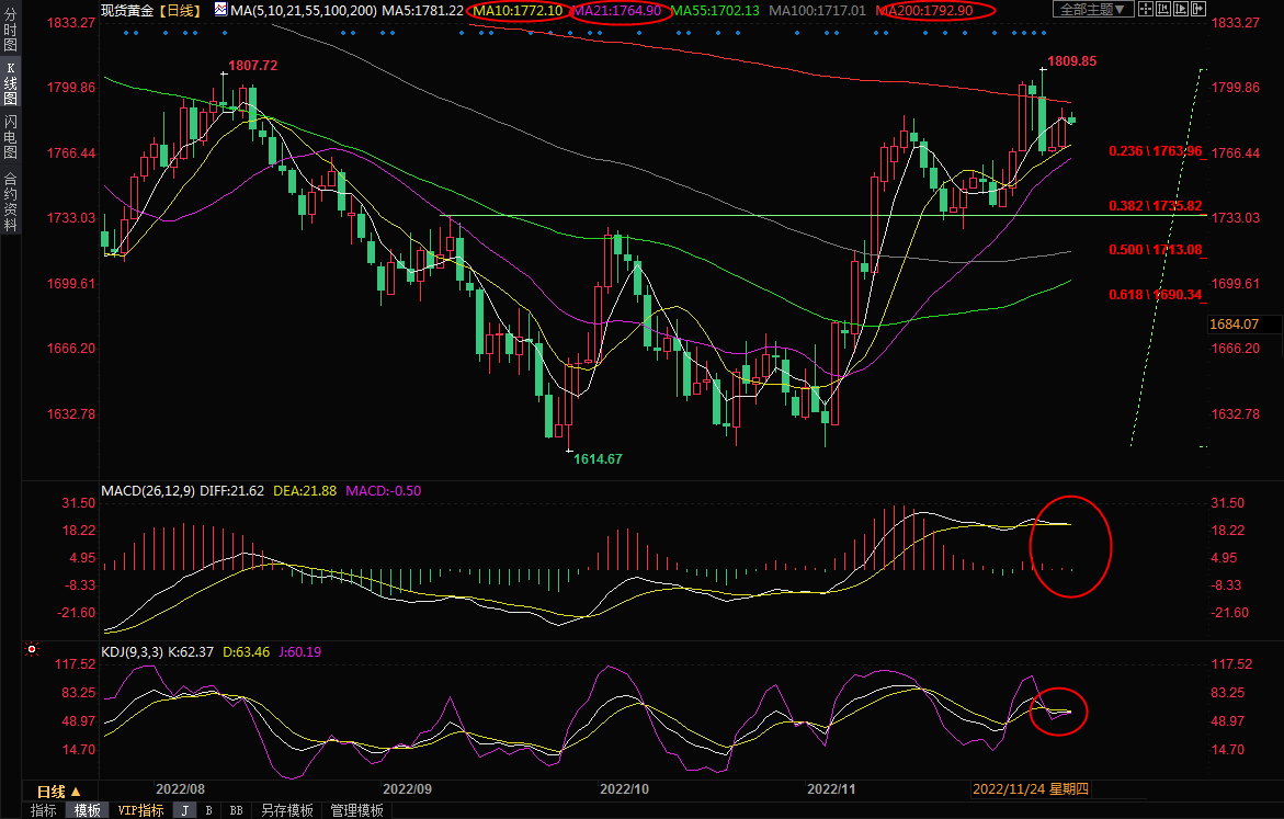 市场更多的目光开始关注下周美国的CPI数据和美联储利率决议,市场普遍预计美联储会放缓加息步伐,多数投资者在中长线看涨黄金后市。不过,短线的话,还需关注晚间美国初请失业金人数的变动,留意200日均线1792.90附近阻力。周五还需留意美国11月PPI数据和消费者信心指数的表现。