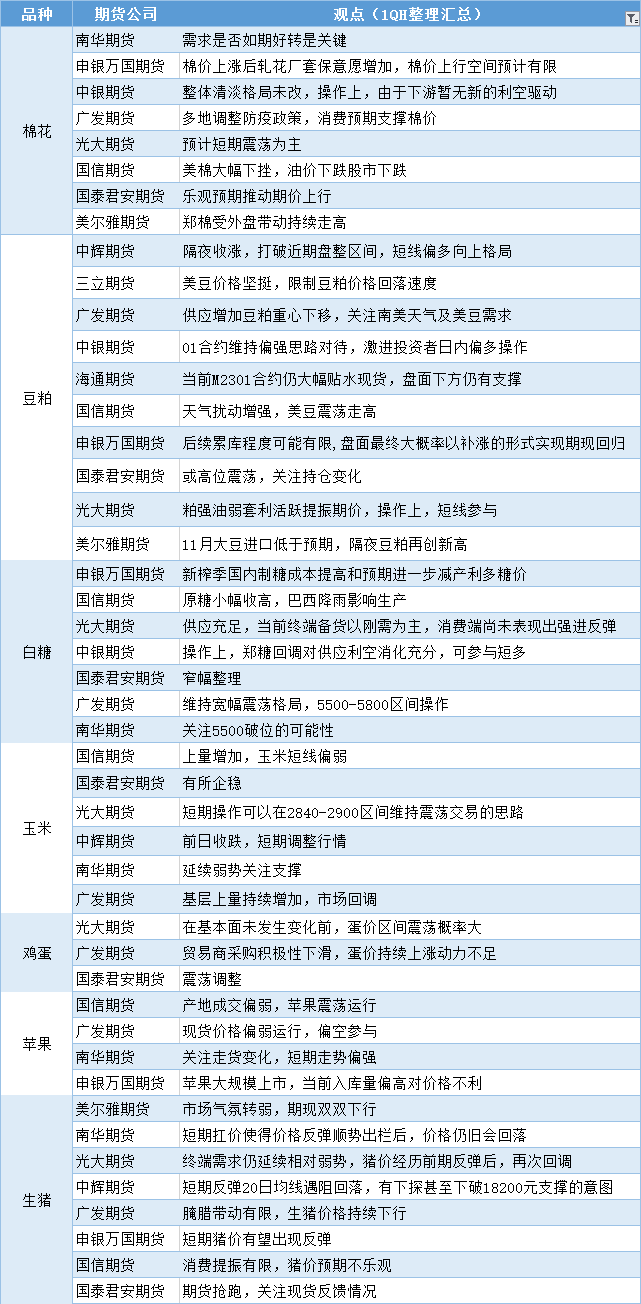 期货公司观点汇总一张图:12月8日农产品(棉花、豆粕、白糖、玉米、鸡蛋、生猪等)