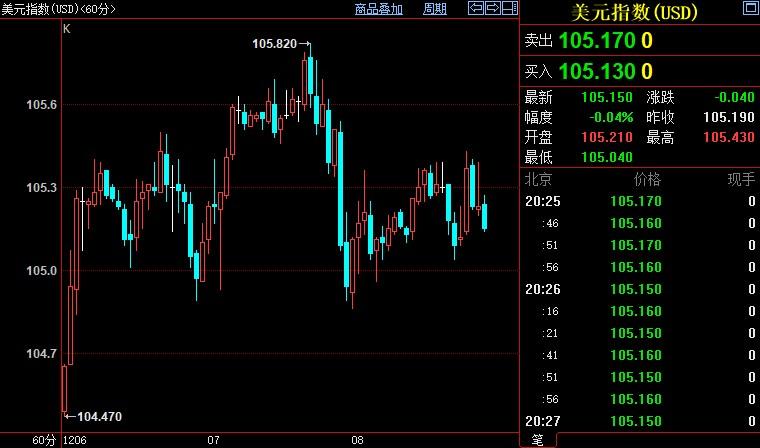 北京时间20:26,现货黄金上浮0.03%至1786.51美元/盎司;COMEX期金主力合约上浮0.03%至1798.6美元/盎司;美元指数下沉0.04%至105.157;10年期美债收益率上涨4.1个基点至1.20%。