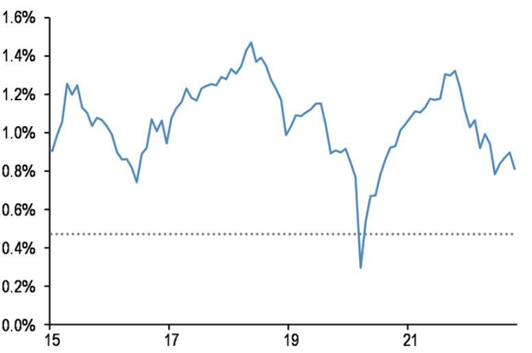 这些策略师表示,在与客户的讨论中,这种情况被广泛认为是世界末日的情况。他们说:“毕竟,上一次联邦基金利率达到6.5%是在2000年,当时的政策利率水平给风险市场带来了非常严重的损失。”