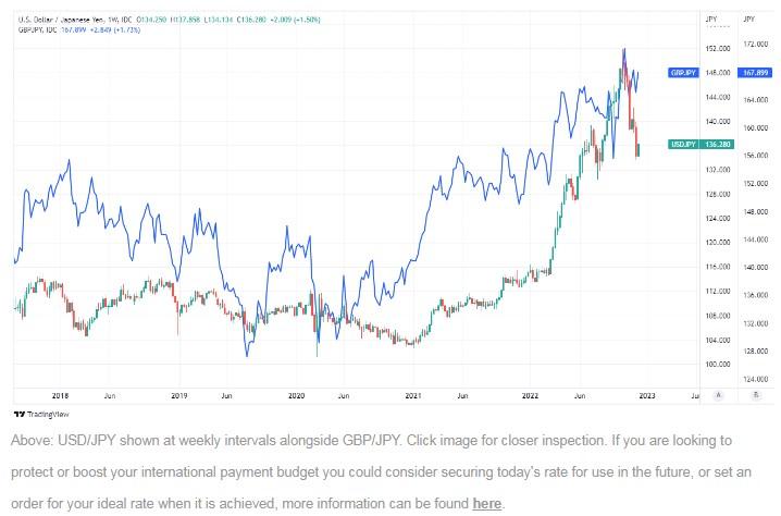图3:美元/日元、英镑/日元周线图