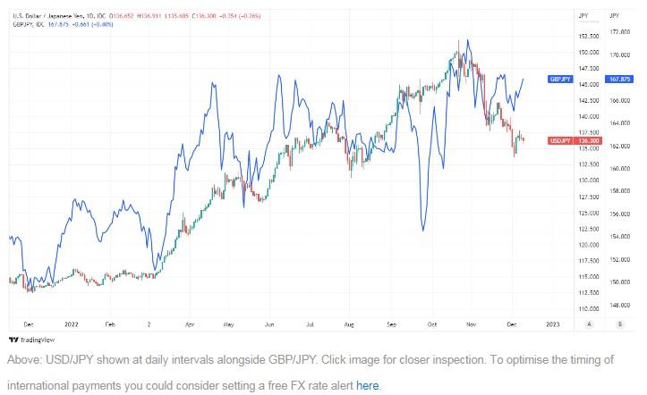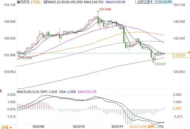 北京时间12月12日15:20,美元兑日元报136.90/91
